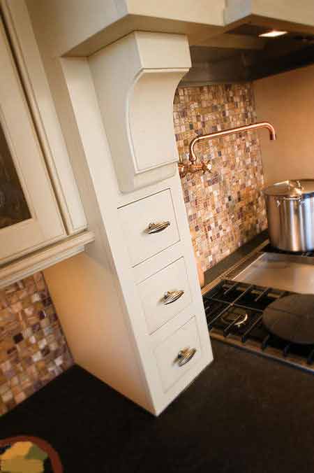 小編的話:閑置箱體、柱子等的空間,都可以被改造成收納。特別像這樣位于烹飪臺(tái)的位置,可以放入一些常用的調(diào)料,制作料理常用的小工具,可以增添不少便捷。