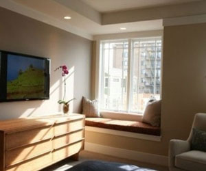 這間臥室的窗臺位于墻角處,以最簡單的方式為其改造,將窗臺筑高,鋪上坐墊,放上靠包即可,這樣能照射到陽光的小角落,是最不能錯過的。 |